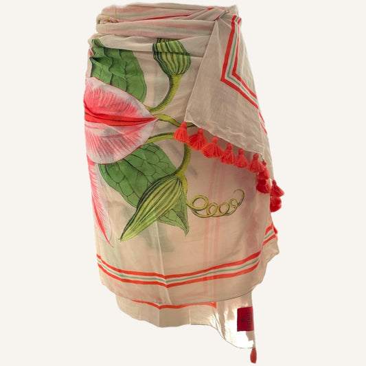 Paisely with fish print sarong & scarf / E120021 - Peach